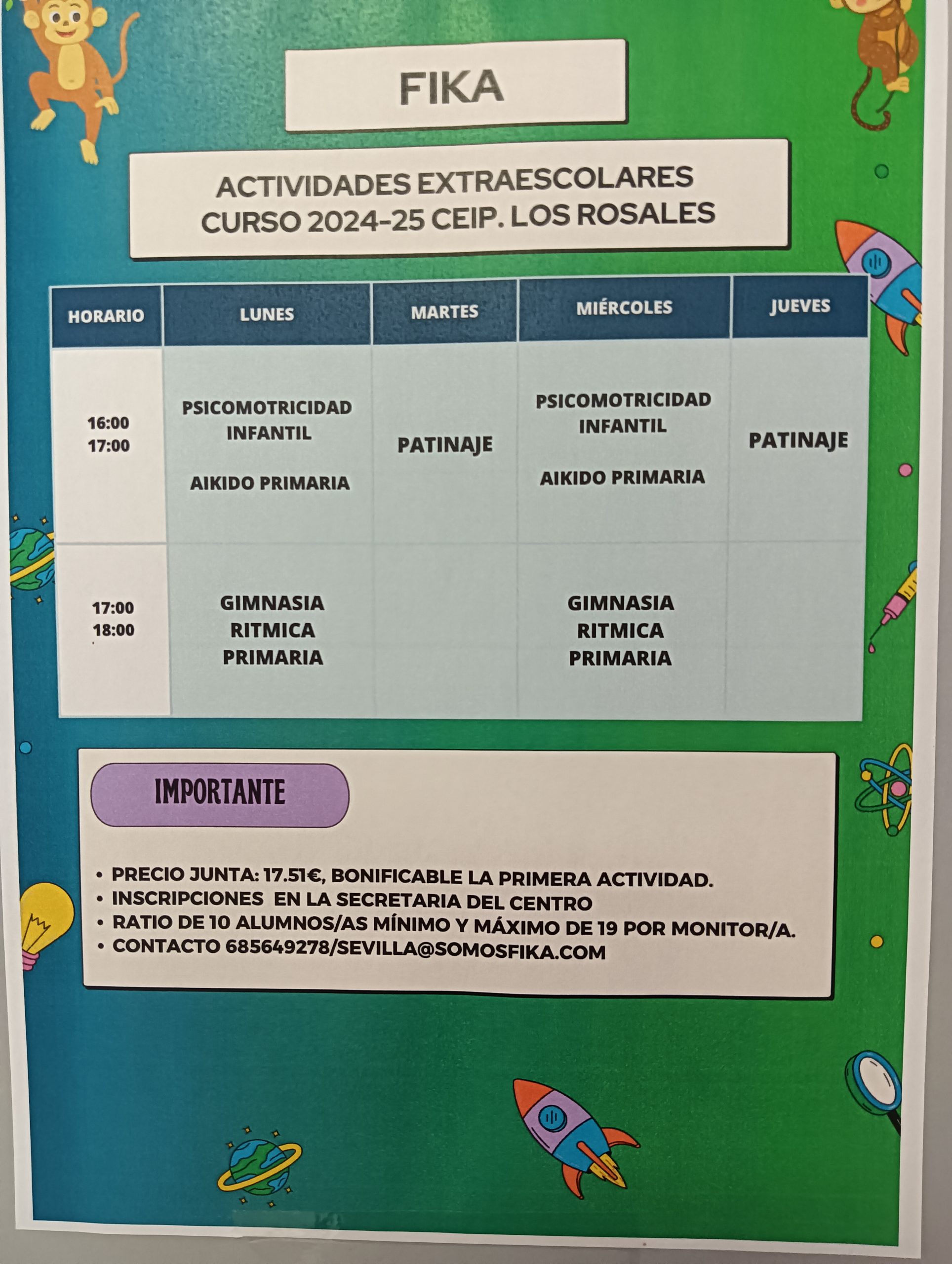 ACTIVIDADES EXTRAESCOLARES DEL PLAN DE APERTURA DE AYUDA A LAS FAMILIAS – CURSO 2024-2025