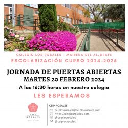 Buenas tardes, El próximo 20 de febrero de 2024 a las 16:30h, tendrá lugar en nuestro colegio la Jornada de Puertas abierta para aquellas familias que esté buscando centro paraLeer más »