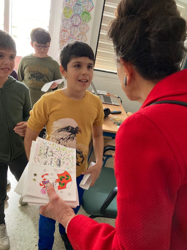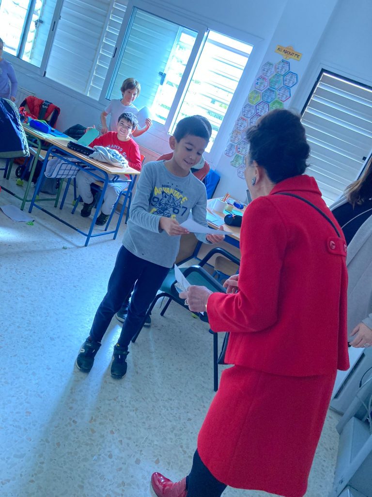 Hoy hemos tenido una visita muy especial: la abuela francesa de Gabriel Nitzki, Madame Can, ha pasado un ratito muy agradable con nosotros en la clase de su nieto, cuarto A. Hemos podido compartir un momento muy especial cuando tod@s los alumn@s le han dado un pequeño regalo en muestra de agradecimiento por su visita y cada uno de ellos ha tratado de intercambiar unas palabritas en francés con ella.